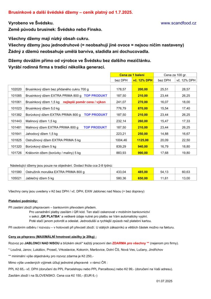 BRUSINKOVÝ DŽEM BEZ CUKRU 700 G.